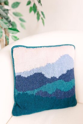 Enjoy a mountainscape view right in your living room with this fun intarsia project. The pillow is worked flat in two pieces, then joined together over a 14 inch pillow form. The scenic intarsia front is easy to work making it an ideal pattern for new and experienced intarsia knitters alike. Once your pillow is assembled, you’ll finish it off with an I-cord edge, to create a fashionable new addition to your lounge area.