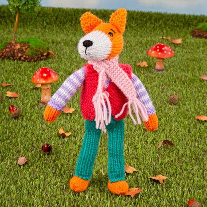 Meet the most stylish fox around the woolly woodland, Mr Fox Trot, as they show off their new autumnal attire of a knitted gilet and scarf to keep autumnal chills at bay. The fox’s gilet and scarf are removable, so you can play dress up with your new friend. Designed by Amanda Berry @fluffandfuzz, the fox is knitted in DK weight yarns on single pointed needles (not in the round). For confident beginners and above, other techniques used include casting on and off, knits, purls, increases and decreases, knitting stripes, and seaming to finish. The fox is 29cm tall including the ears.