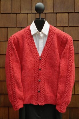 Needles used are smaller than usual for this weight yarn. This produces a garment which lasts longer and fits better. Sleeves are knitted from the shoulders down to the cuff. Stockinette gauge is 5 st/in on US 6.