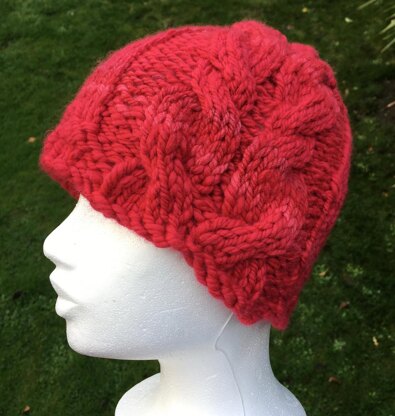If you’re a runner, autumn and winter are cross country season which means hills and mud, wind and rain. And if someone you love loves to run cross country, you’ll love this warm hat to keep you cosy while they’re haring through the mud and rain. It works up quickly using super bulky/super chunky yarn for when you need headgear for a last-minute race or a surprise gift. The single pair of cables is enough to keep the knitter occupied while the simple style will suit all members of the family, whatever the weather conditions. The pattern is mostly written instructions; the cable pattern is given as both written and charted directions. It is not necessary to use charts to work this design.