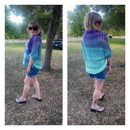 The Muffin Cocoon Cardigan is designed to be lightweight and airy, a perfect edition to any spring or early fall outfit. It is meant to be open and comfy. The pattern is written for three different sizes, small, medium, and large. Sizes can be altered further by using a smaller/larger hook or a heavier yarn. Skill Level: Beginner - It is a very easy pattern, using only chain stitches, single crochet, double crochet, and slip stitches. Materials: 5.0 mm crochet hook, stitch markers, yarn needle, scissors and any fingering weight yarn. I used a Stenli Muffin cake.