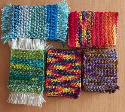 Mug Rug Coaster Collection - Materials Yarn: Mixture of stash yarn around DK/Sportweight, or two strands of Fingering/Sock yarn held together.