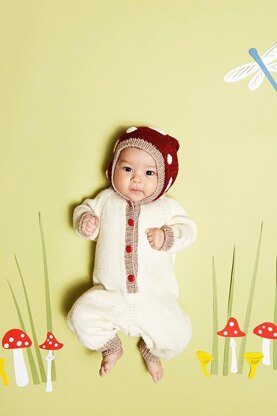 Swans Island Washable Wool (DK weight; 10% certified organic merino wool; 128m [140yds] per 50g skein) 3 (4*, 4) x skeins of Snowy Owl (EWS201) as yarn A Small amount of white 4ply/Sport weight yarn for the mushroom circles on the hood as yarn D. The sample used Swans Island Washable Wool (Sport weight; 10% certified organic merino wool; 128m [140yds] per 50g skein) in Dove. *The actual sample was made using 3 skeins of Snowy Owl DK (EWS201) and there was just about 1m of yarn left. The exact calculated amount is 401m of the Snowy Owl DK (EWS201). Calculated amount (no extra included): Snowy Owl (EWS201) 342 (401, 464) m Mushroom (EWS216) 54 (60, 64) m Cayenne (EWS206) 77 (91, 105) m