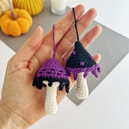 Mushrooms no sew crochet pattern Amigurumi mushroom keychain charm Halloween ornament Car mirror hanger Keyring crochet bag charm