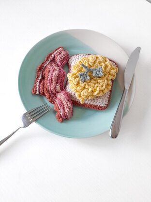 There’s just something about crocheting breakfast foods that is oh so satisfying: scrambled eggs, bacon, toast and a little sprig of parsley for garnish.