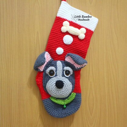 This is a DOWNLOADABLE PATTERN. Written in English using US terminology. Let's get Christmas stockings for every member of the family including your pets. This will be the perfect stocking for your furry best friend!