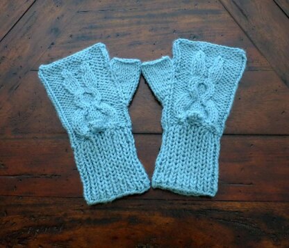 This is Bunny Design 9 in my Bunny Pattern Collection and it is my favorite one for mittens. It is also the easiest of the bunny mitten patterns to knit. The bunny on these mittens matches the bunny on my hat pattern. There is a bunny on both sides of the mittens. The mittens have a full thumb gusset unlike my other fingerless mitten patterns. There is also the option to knit the bunny without a bobble tail.