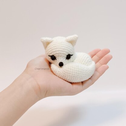 Materials: _ Yarn: NAKO Angora Luks #208 (or Plymouth Yarn Angora)– Safety eyes 8 mm – Crochet hook 2.00 mm – Stuffing (Polyester fiber fill) – Tapestry needle – Stitch marker or contrast color yarn If you use these materials, the finished product is around 10 cm (4”) long, 6cm (2.5”) tall.