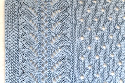 Babies need sweet blankets. I wanted to make a design that could be used for both boys and girls. Here is to my sweet pea baby. This blanket could be knit in sport, DK, or worsted weight yarn, just adjust the size of needles. Sample was done using about 952yrds (875m) of sport weight yarn, 7 balls of MillaMia naturally soft merino in Sky Blue (126) using US 6 (4.0mm) needles. Sky Blue color is currently discontinued, suggested color substitute is Forget me Not (120).