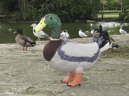 This is the My Pet Mallard Duck knitting pattern. As you will be aware if you have any of the "My Pet" collection of madmonkeyknits knitting patterns I try to make these designs as realistic as possible and true size where feasible. So this duck is duck size and fits in wherever real ducks may be hanging out. The knitting pattern provides full written instructions with lots of make-up photos to help you make this magnificent bird.