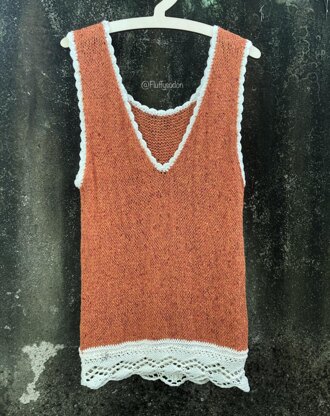 The My Love Tanktop is knit from the top down in stockinette stitch, begin by working the top of the back flat, after which stitches are picked up along the cast on edge for the shoulders. Each shoulder is knit separately then the front and back of the sweater are joined under the armholes and the body is knit in the round. Finally stitches are picked up along the armholes and the neck by crochet hook. Sizes: S-M-L Bust circumference: 75/80-85/90-95/100cm Length (measured at back): 50-53-57cm Yarn: Lang Seta Tweed and Yarn Art Jeans Number of skeins: 3-4-5 for Lang and 1 for Jeans Yardage: 400-600m Needles: Circular needles 40/60/80cm, Double Pointed Needles: 4,5mm and 3,5mm-4,5mm crochet hook. Gauge: 22sts x 30 rows = 10 x 10cm in stocking stitch on 4mm needles after blocking. Thank you very much and enjoy your knitting. FluffySuDon.
