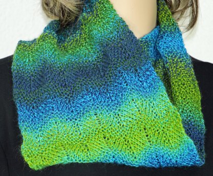 Mystic River Scarf is perfect for that skein of self-striping yarn that you fell in love with, but then it never told you what it wanted to be. The pattern includes instructions for a short or a long cowl or a scarf and the pattern can easily be adjusted in width and length. Many thanks to my tech editor Michelle Hazell and my testknitters AaseE, andrea73, chicco, selana and sandy-in-thesun. Any remaining mistakes are mine.