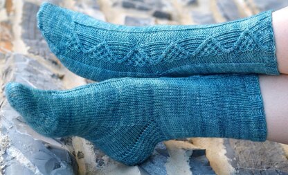 This sock pattern contains mirrored cables on left and right. They remind me of the mountains in Nahanni National Park in Canada’s Northwest Territories.