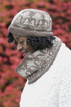 **gauge:**Hat: 33 sts and 34 rows = 4” / 10 cm in Stockinette stitch over Hat Chart Cowl: 31 sts and 34 rows = 4” / 10 cm in Stockinette stitch over Cowl Chart