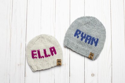 Name Hat Knitting Pattern Initial Letter Monogram Personalized Knit Winter Beanie Toque Knitted Worsted Weight Baby Toddler Child Women Men