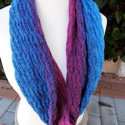 NaNu? is a Loop, which is knitted in rounds on circular needles only with knitted and purled stitches. My prototype measures about 130cm in circumference and has a height of 33cm.