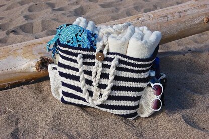 My "Chasing Chevrons" Beach Bag has become my "Yarn Bag" so I figured it was time to design another Beach Bag. I am in LOVE with classic color combinations, so the wheels in my head started turning and I thought to myself "Ah ha! A nautical themed beach bag would be PERFECT!" :D