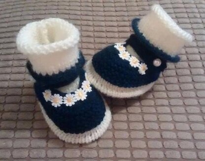 Knitting pattern for Navy and Cream Mary Jane tuck edge shoes and matching socks New born, 0-3 months and 3-6 months this is my own pattern