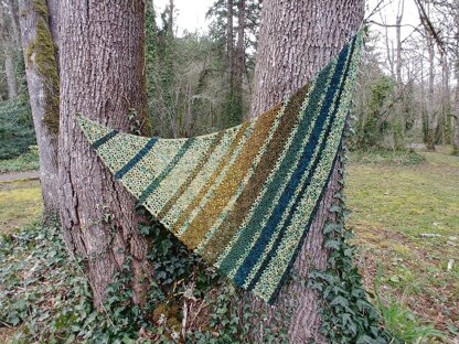 Ned’s Dye-Pot Shawl is worked on the bias, starting from one corner and gradually increasing to form a triangle, allowing the crocheter to adjust the pattern to any quantity or combination of yarns. Inspired by the make-do and reuse attitude of the 1930s, a full skein of speckled yarn mimics the skeins Ned uses to soak up the last of the dyes, and gradient mini skeins could be leftover yarn from other projects. The lace uses easy combinations of chains and double crochets, making it a perfect design for Ned to crochet her dye-pot yarn into shawls to give to people living in the local Hooverville.