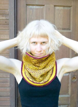 Bright latices of color weave through this gorgeous cowl, tracing a diamond pattern that cheerfully blurs the line between traditional and modern. Nerine is knit in the round then folded in half to make a seamless, double-sided cowl with a thick and cozy fabric, and the easy-to-memorize pattern repeats are a good introduction to stranded color work.