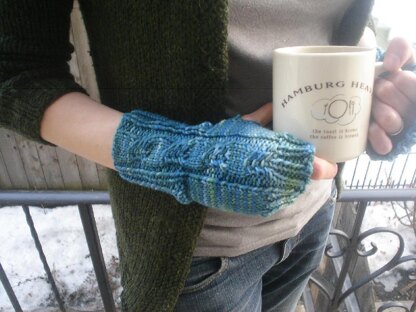 Happy Malabrigo March, one and all! These wristwarmers have a cabled panel on the back of the hand which coordinate with my Nest Egg Beanie. These knit up fast, and if you make the smallest size of both patterns, you should be able to get the set out of two skeins of Rios!