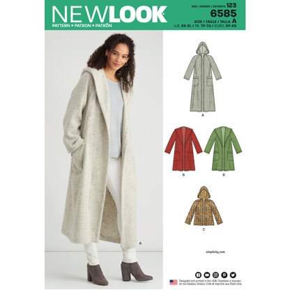 New Look 6585 Misses' Coat with Hood 6585 - Paper Pattern, Size A (XS-S-M-L-XL)