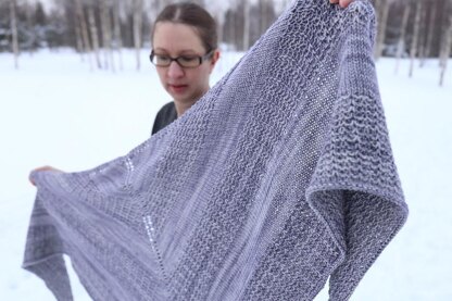 Rich texture and smooth stockinette stitch – New Paths is a cozy shawl with a traditional triangle shape. Knit with DK weight yarn and blanket sized, it’s wonderful for keeping you warm.