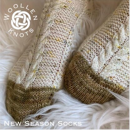 The New Season Socks were inspired by the first signs of spring. They have a cable pattern growing up the centre of the front of the foot and leg, with garter stitch and a mock rib either side. The back of the leg has been left plain stocking stitch, but the stitch pattern from the front of the leg could be incorporated into the back too. The pattern has a wedge toe and a Wrap and Turn short row heel, however the heel and toe could easily be changed to your own choice. They are knit using the magic loop method but can be adapted to suit dpns. The pattern has written instruction and a chart for the cable panel.