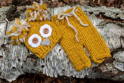The owl set is knit on 12mm straight needles (NOT in the round).