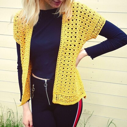 Mimosa is a NO-SEW vintage-style short sleeve cardigan where the only sewing is weaving in your ends!