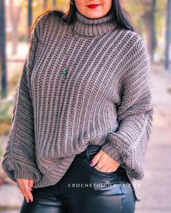 Meet your next favorite autumn sweater! The No Slip Stitch Given Sweater features a timeless knit-look texture, and the stitch pattern lives up to its name – it involves almost no slip stitch work! With a generous amount of positive ease around the bust for the ultimate cozy fit, this is the ideal garment to style down and lounge at home, or style up for a fancy night out. Featuring details such as a turtleneck, a high low hem, bubble sleeves and ribbed finishings, this sweater is comfy and cozy, like a wearable blanket yet incredibly stylish.