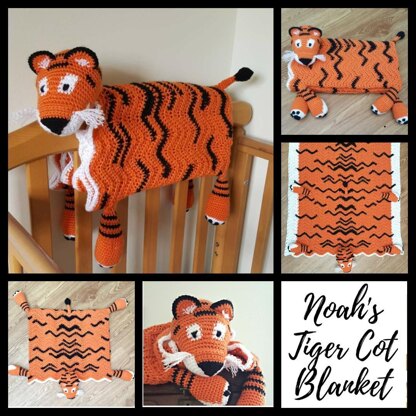 This super cute Tiger blanket is very versatile and can be used as a cot blanket, pram blanket, play mat, comforter or toy. I came up with the pattern after desiging a lion cot blanket and wanted to expand the collection. The blanket will keep baby both entertained and cosy, the ripple blanket stitch is soft and warm and the amigurumi head, tail and legs are fun to play with but not to heavy or bulky when it is used as a blanket, it is easy to store as it is designed to be hung over a cot. Pattern details: The pattern is a written over 15pages and includes detailed written pattern notes, pattern graphs, lots of photos, stitch tutorials and links to tutorials and videos that may be helpful. Skill level: intermediate Sizes: Flat blanket: 70cm x 80cm Folded blanket: 40cm x 40cm