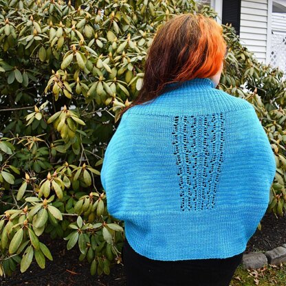 The shrug is meant to have at least 4” of postive ease. The openings for the arms hit just below the elbow. You can adjust the length of the shrug and the fit of the armholes by increasing or decreasing the number of rows in the center section.