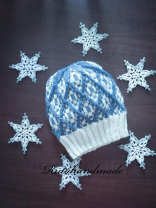 Alternative fairisle with 3 and 4 stitches cables. Pattern is written for S/M and L size, but size is adjustable adding 12 more sts for bigger size. Stitches to know are: 3and 4 sts cables, ssk, k2tog and basic (2 colors) fairisle technique. I used dropsdesign Lima yarns (1 skein for each colors), but any DK yarns are perfect. If you need bigger size i suggest to use 2 skeins (50g each) of each color