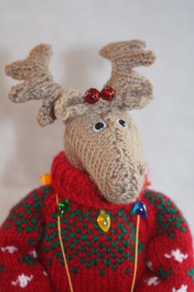 As an Albertan, I have a love for all moose. I was asked by a friend to design a new moose for her daughter's collection. Norman- the Northlands Moose is what came off my needles. Worked in Schachenmayr yarns and dressed in a bulky intarsia sweater this moose is a unique Christmas ornament that is sure to please. It stands by itself and is bold and beautiful, horns and all.