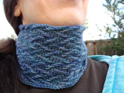 Good things come in small packages! This highly textured cowl with easier-than-it-looks slipped stitches only uses 30g of worsted weight yarn! It's the perfect way to keep warm and stylish without the fuss of a scarf. Just pull it on and go.