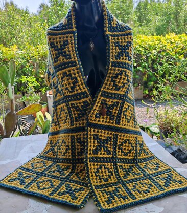 The motif for this wrap is one of many in Barbara Walker’s Mosaic Knitting – which I consider a treasury for anyone interested in creating designs using mosaic motifs. The shawl is worked in garter stitch and knit in one piece – from one end to the other. I would consider it a good introduction to mosaic knitting by chart for advanced beginners.