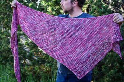 Numinous is an asymmetrical triangular shawl, worked on the bias. The elongated garter and eyelet sections are quite easy to follow along with and would be appropriate for busier yarns that may be hanging out in your stash. The final lace section of the shawl adds a nice touch of feminine charm, which would also l look fun with a solid coordinating color if you’re using a variegated through the rest of the shawl.