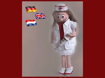 * Simple pattern if you know how to crochet Magic Ring, chain , slip stitch, single crochet, half double crochet and double crochet. * This manual is available in English, Dutch and German. * The Doll is 40 cm (hook size 2). * The manual is very detailed and contains many photos.* If you have any problems and / or questions about my instructions please contact me by email. Attention! This is a crochet pattern, not a finished product