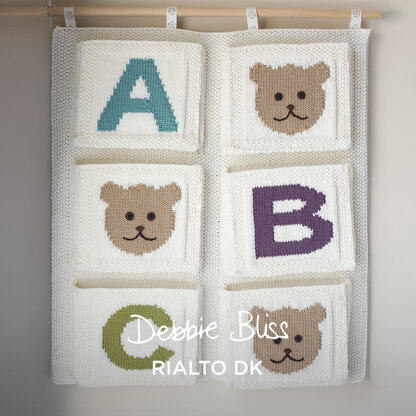 Debbie Bliss’s nursery storage pockets is an adorable wall hanging, perfect for organizing nursery essentials. Featuring pockets with intarsia letters and bear designs, this charming project adds both function and style. The pockets and backing are knit separately, with the pockets sewn on during finishing. Note: the intarsia designs are charted.
