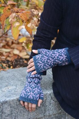 Inspired by the beauty of the New York Botanic Garden in the Bronx, this sweet pair of mitts is worked in a slipped stitch pattern. Slipped stitch, or mosaic patterns, are a wonderful way to achieve a colorwork effect without the need to carry two yarns on a row. From the moment I first saw this pretty floral motif in Barbara Walker’s wonderful book, Mosaic Knitting, I knew I had to use it in a design that lets the stitch pattern take center stage.