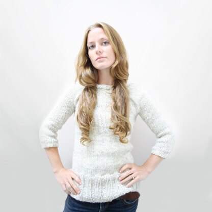 This fitted pullover is knit from the top down and requires very little yarn. The body is generous in length featuring deep ribbing and raglan sleeve shaping. The 3/4 length sleeves require no shaping and are fitted to flatter. The entire garment is knit in the round and requires absolutely no seaming. Perfect for trying on as you go for that perfect fit.