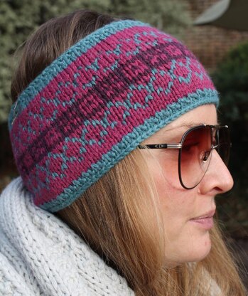 This is a fun headband that will look greatwith many of your favourite items of clothing. It is part of a range of mix and match winter accessories and will use up many of the oddments of yarn from making the fair isle scarf. There are easy to follow charts to knit the Fair Isle.