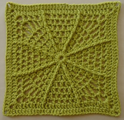 It was designed in aran weight yarn using a 5mm crochet hook, and is approx. 12” (30cm) square. But can be made in any weight of yarn provided you use a suitable hook size, and of course the square will be a different dimension if other yarn is used.
