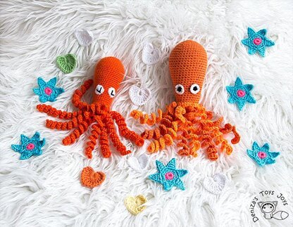 Octopus toy to Help Comfort Premature Babies. The finished octopus is approximately 10,5’’ / 27 cm / tall.