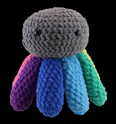 This crochet pattern for the Octopus by Sarah Quillen creates a soft huggable 14" stuffed octopus. The terms are US. The pattern includes an “easy to follow” layout with many pictures for reference. The pattern is designed for blanket yarn but can also be done in worsted weight yarn with a size F hook and 10mm eyes to create a much smaller octopus. This pattern can be done in so many differnet colors, I chose one of my favorites that Love Crafts carries, but be crative, find the color or colors you like and have fun.