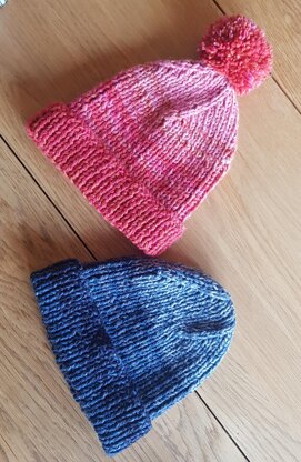 Easy to knit hat that can be adapted to suit any combination of DK (light worsted) yarn and colour palette.