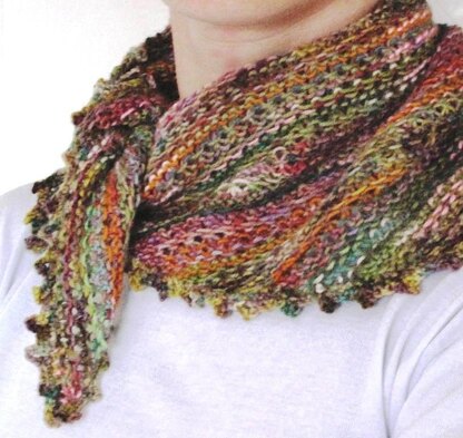 This pattern emerged after looking for ways to use up small scraps of yarn. The hoarder in me could not throw away those lengths of yarn after sewing up, particularly if it was yarn that had been hand-painted or perhaps was quite expensive. There are quite a few attractive scarves that use similar techniques; I would not claim to be the originator of this idea. However, what I wanted was a knitting stitch which allowed splashes of different colours from the odds of yarn to get mixed in with each other and yet also provide a reversible knitted surface. With this in mind, I began to experiment with slip stitches and eventually came up with this simple pattern