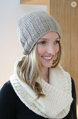 A simple chunky cowl & beanie, made to keep in the warmth. An easy pattern for beginner knitters using Stocking stitch & rib and worked on large needles for a quick result.