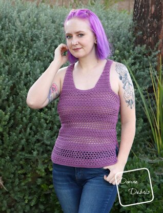 For me the only way to beat the heat is with light layering clothes. When the temps quickly approach 3 digits you can definitely find me in a tank top. And that’s why I love an opportunity to make something light and fun with yarn, like this design. The Odette Tank Top is based off my other Odette patterns with all their lovely texture but this one features light open sections that help with air flow during the warmer months. This design is worked from the bottom up in 2 pieces that you then seam together to create a fun and tank top, perfect for over a smaller tank top or a swimming suit (or just a bra if you’re like me). I hope you like it